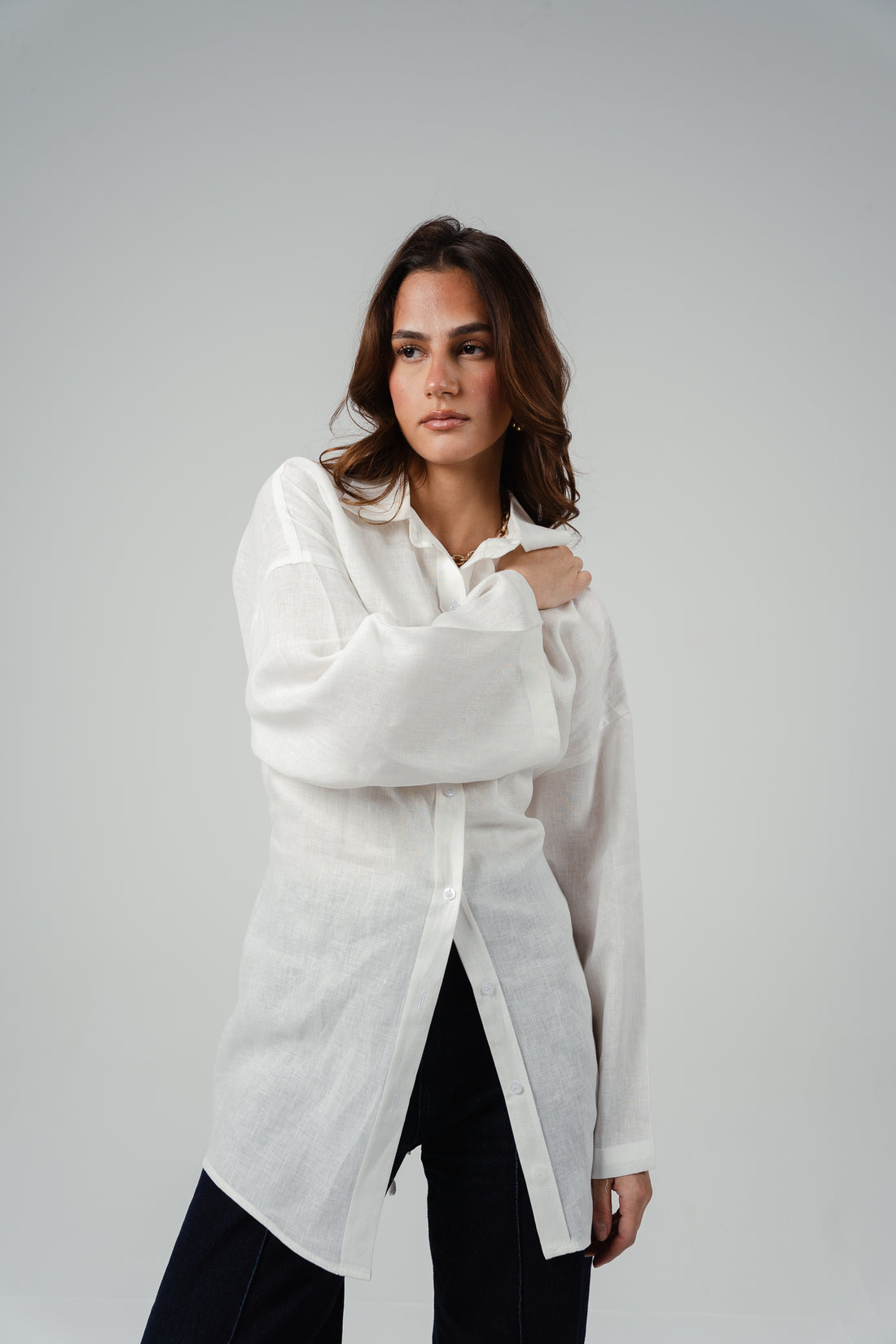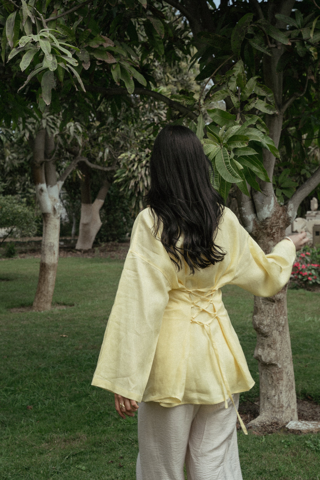 Effortless elegance meets casual comfort with our Back Tie Linen Blouse. Crafted from breathable, soft...