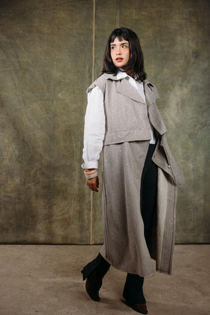 - Long, relaxed silhouette for layering