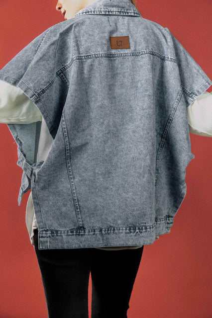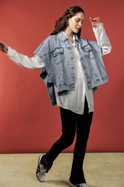 Crafted from high-quality denim, this timeless piece adds an effortless edge to any outfit. Its versatile design makes it perfect for layering over shirts, knits, or dresses — giving your look a chic, laid-back vibe.
