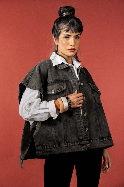 Crafted from high-quality denim, this timeless piece adds an effortless edge to any outfit. Its versatile design makes it perfect for layering over shirts, knits, or dresses — giving your look a chic, laid-back vibe.