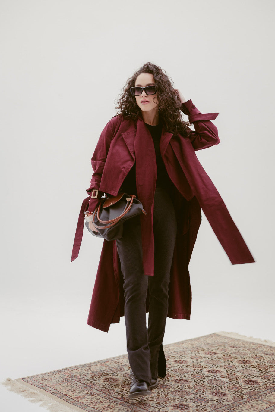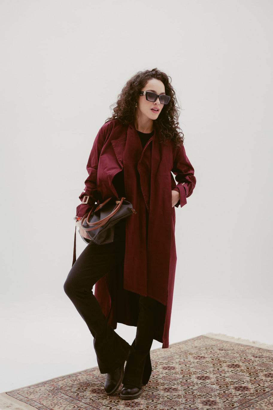 - Timeless trench coat design with clean lines