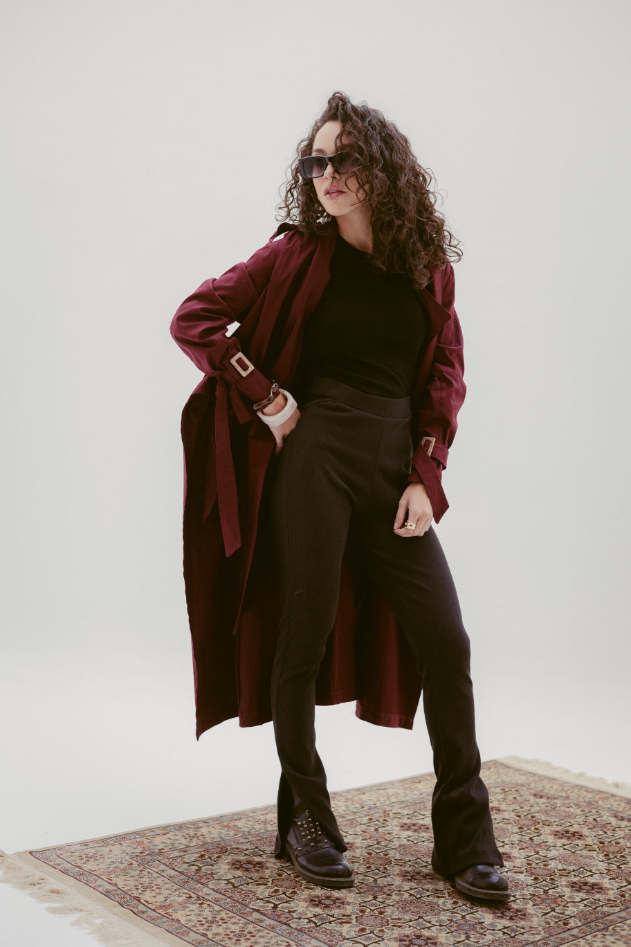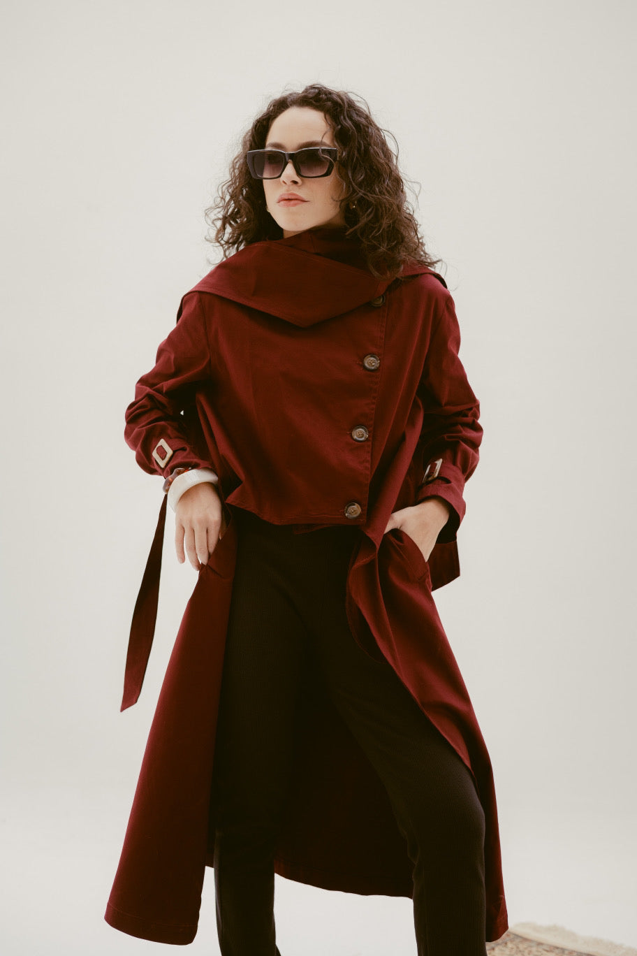 Crafted from durable gabardine fabric, this coat combines structure and smooth drape for a polished, sophisticated look. Featuring a classic belted waist and clean lines, it’s perfect for layering over both casual and formal outfits. A wardrobe essential that never goes out of style.