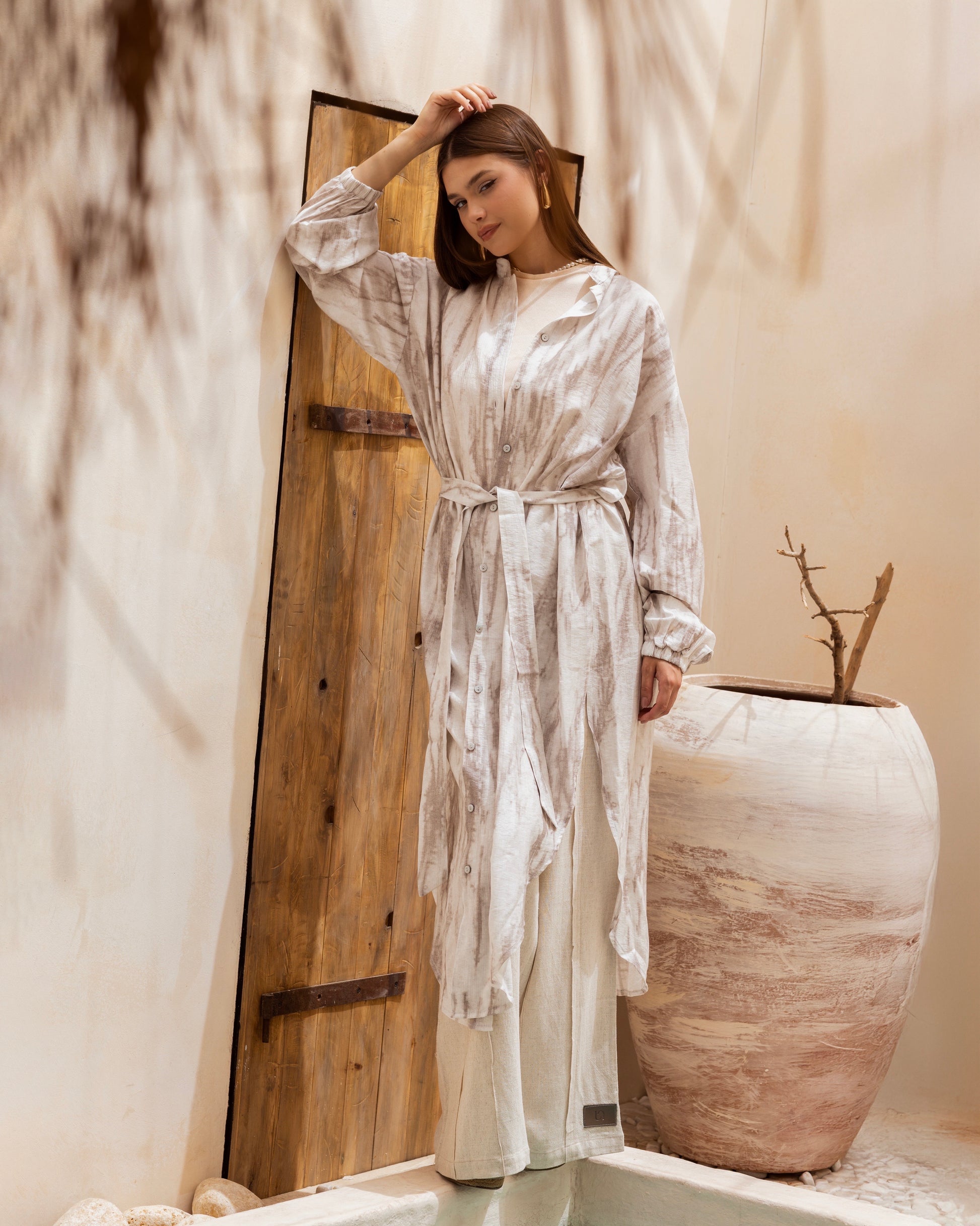 Elevate your summer wardrobe with our Summery Marble Blouse aperfect blend of elegance and ease. Featuring a fluid, marble-inspired print, this lightweight blouse drapes beautifully for a breezy, effortless feel. Crafted from soft, breathable fabric, it keeps you cool while adding a touch of sophistication to any look. Pair it with linen pants or denim for a chic, versatile outfit that transitions seamlessly from day to night.