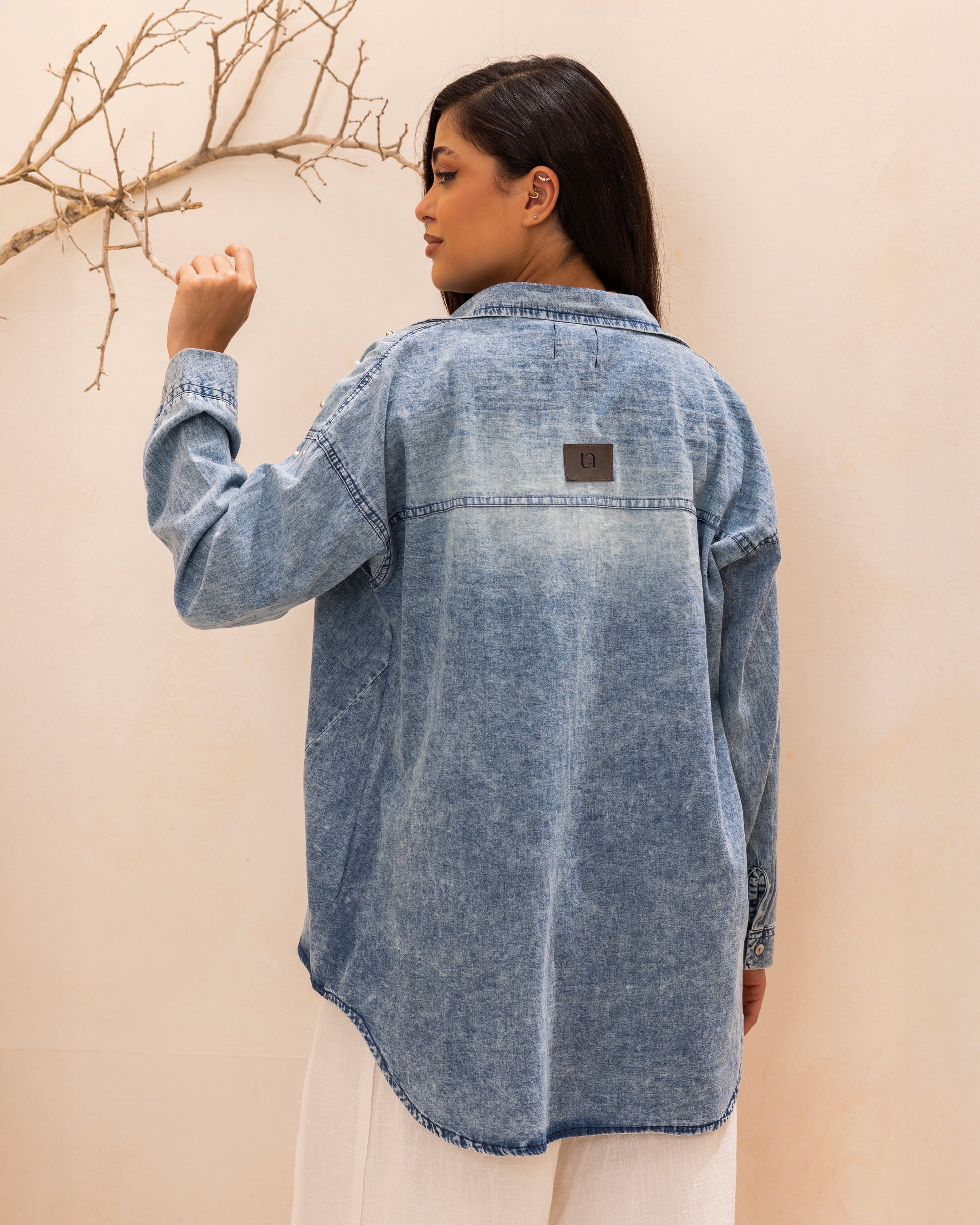 Designed with a boxy-yet-flattering silhouette, crisp collar, and structured cuffs, it pairs versatility with statement-making style. Wear it buttoned up for a sleek look, or layer it over basics as a light jacket — either way, it’s the kind of piece that stands out without trying too hard.