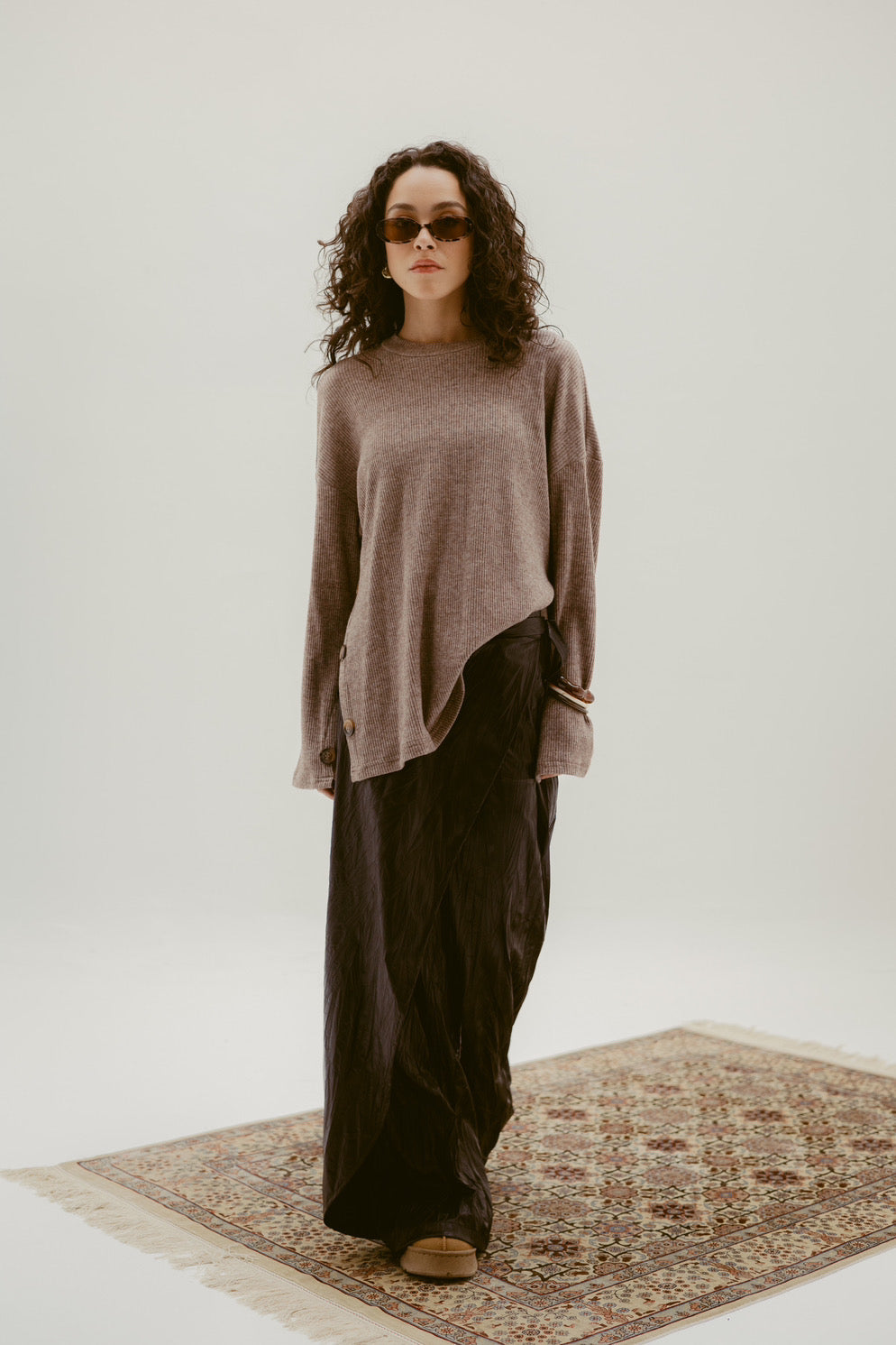 - Soft, flowy fabric with a subtle sheen