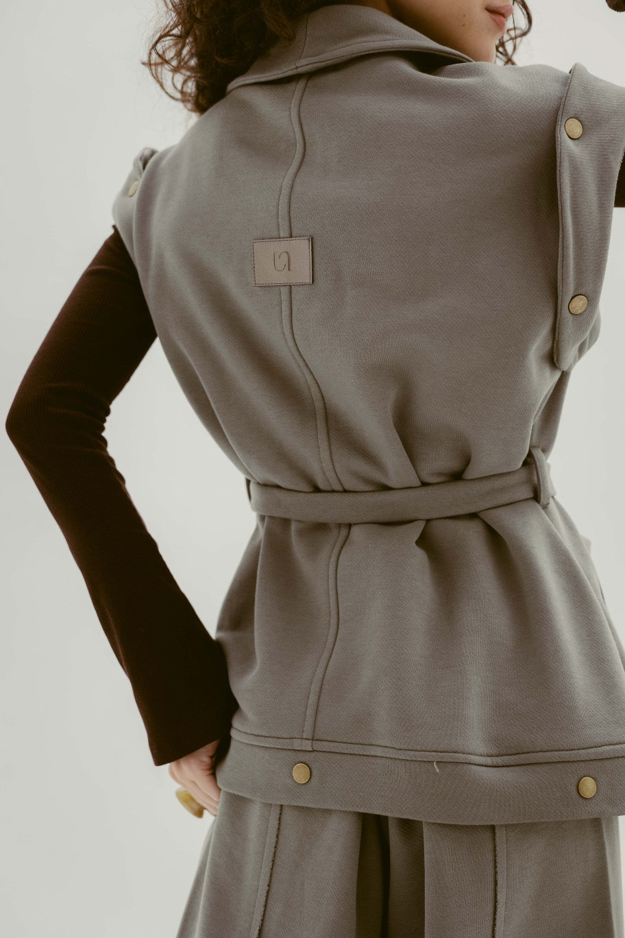 The vest design adds a stylish layering feel, while the subtle stud detailing brings just the right amount of attitude to a clean, minimal look.